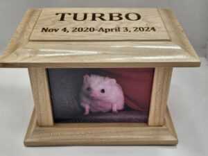 With a selection of Maple, Walnut, Acacia and Rosewood, there are many choices of urn styles that fit your lifestyle. Many are made in the USA. Our wooden urns can come with an option of engraving an image of your beloved pet, plus their name and dates. You are also welcome to provide your own urn. We will transfer the ashes for you.